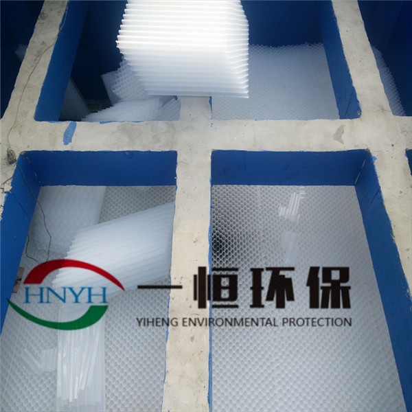 蜂窩斜管填料壁厚:0.4-0.8mm,內(nèi)切圓直徑分別有25、30、35、50、80、100mm。通用塊體為(長×寬×高)1000×1000×866mm。斜管斜長為1000mm。塊體傾角為60度、45度。每塊為1.0m2,特殊規(guī)格可另定。